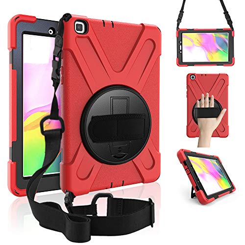 wayfair ZenRich Galaxy Tab A 8.0 Case (2019),360 Degree Rotatable Kickstand,Hand Strap and Shoulder Strap, zenrich Hybrid Heavy Duty Shockproof Case for Samsung Galaxy Tab A 8.0 SM-T290/T295/T297 (Red)